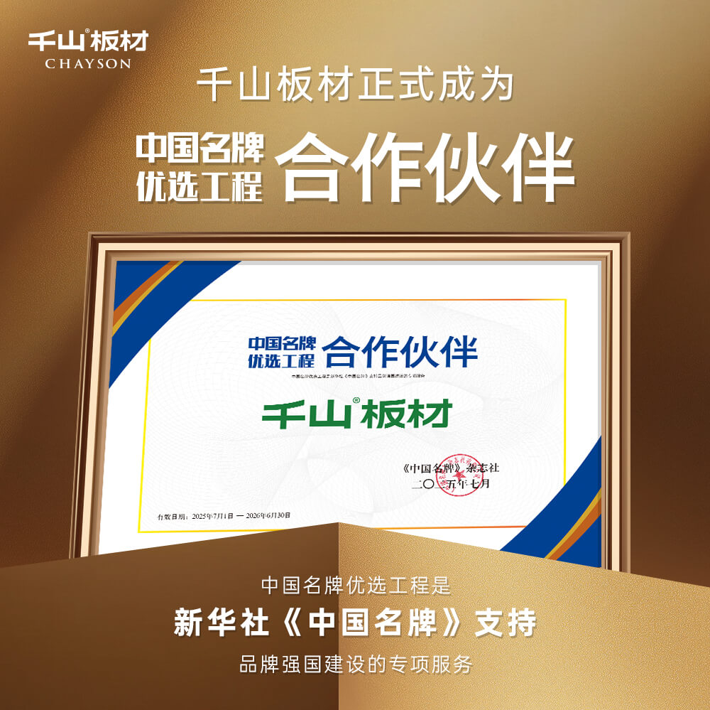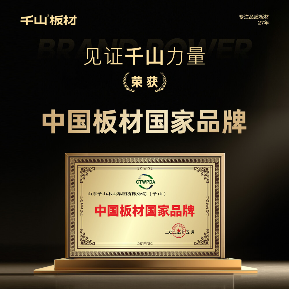 山东千山木业集团有限公司始创于1998年,是集板材研发生产、销售、印刷、浸胶、全屋定制等为一体的综合性品牌运营企业。公司总部位于中国“板材之都"山东临沂,拥有多个产业基地,坚持"质量第一,客户至上"的原则,致力于为客户提供高质量的板材产品。千山产品均通过ISO9001质量管理体系认证, 欧盟CE认证,中国环境标志认证等。千山板材先后荣获山东名牌、省林业重点"龙头企业”、市级重点龙头企业、板材十大品牌等荣誉。千山集团未来发展将立足山东,布局全国,努力推动板材产业的高端化、品牌化发展,实现企业的可持续发展。