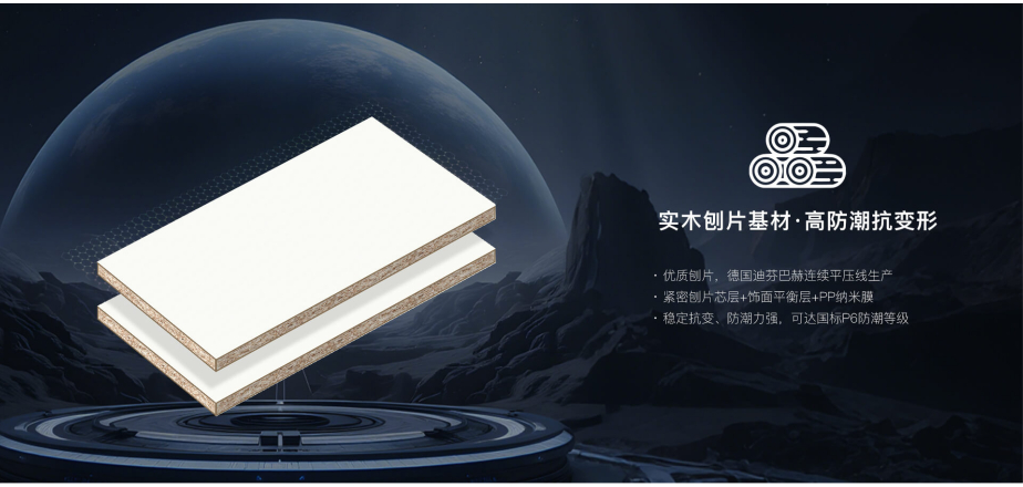 刨片板是新一代环保家居板材被广泛应用于整体衣柜、橱柜、电视柜、鞋柜、浴室柜等。无醛添加MDI胶,安全性、稳定性高板材环保等级最高达ENF级。